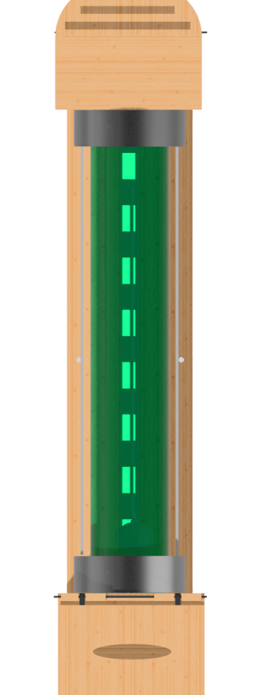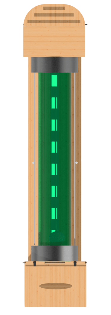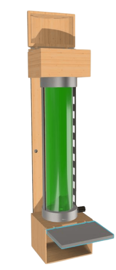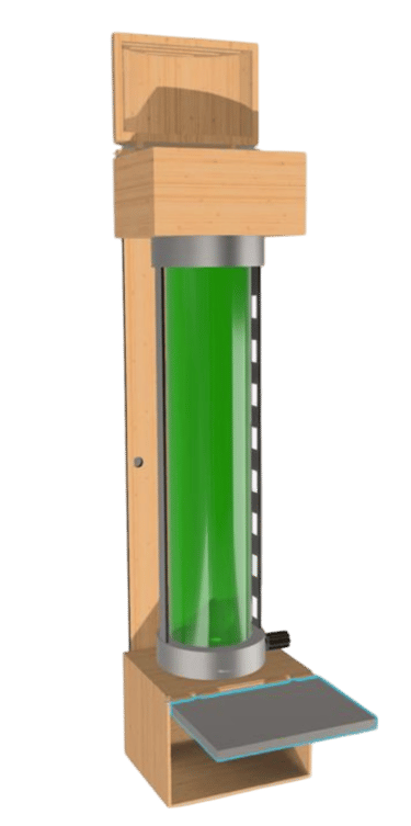 Un photobioréacteur est une machine permettant de cultiver des micro-organismes photosynthétiques en suspension, la majeure partie du temps des microalgues. Le dispositif est très simple et est composé de 4 éléments : une cuve en verre contenant une culture de microalgue, d’un régulateur de température pour maintenir la culture en condition de vie optimale, d’un éclairage continu pour que cette dernière puisse appliquer la photosynthèse, et enfin d’un bulleur afin que les microalgues puisse avoir un accès direct au gaz dont elles ont besoin pour croître.